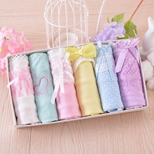 包邮纯棉女士三角内裤可爱少女中腰蕾丝全棉质面料卡通内裤礼盒装