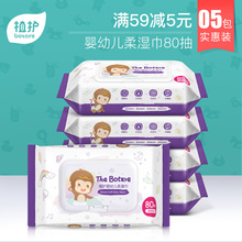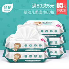 植护婴儿湿巾纸80抽*5包带盖手口湿巾片宝宝BB柔湿巾新生儿