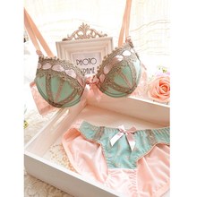 少女刺绣调整型内衣加厚 女士秋冬聚拢文胸套装性感深v蕾丝小胸