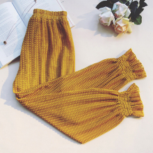 夏季韩版宽松蕾丝条纹松紧腰哈伦九分裤薄款休闲裤防晒灯笼长裤女