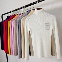 韩国秋冬新弹力紧身螺纹半高领针织衫打底衫线衫套头长袖毛衣上衣