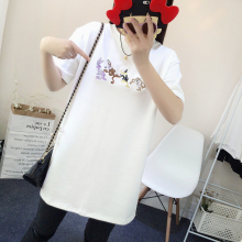 韩国东大门代购t恤女短袖棉刺绣卡通体恤打底衫中长2017春季新款