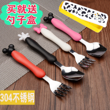 米奇米妮宝宝勺子叉子套装婴儿不锈钢训练习勺叉儿童吃饭面条勺叉