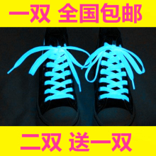 萤光夜光鞋带彩色创意银光发光反光白色帆布运动鞋荧光鞋带扁特亮