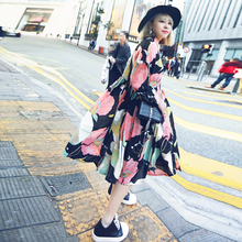 NANA欧美街拍大花印花宽松中长款春夏季长袖连衣裙子防晒雪纺衫女