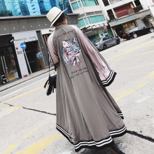 NANA定制超长款港味街拍重工刺绣图案女装春季长袖宽松风衣外套