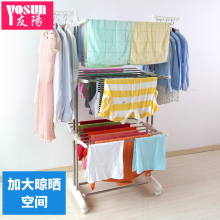 友阳 不锈钢晾衣架 双层带网 晒衣架 双杆落地伸缩晾晒架子