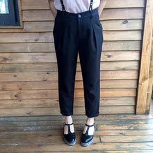夏季新款 复古休闲背带裤西裤 黑色显瘦哈伦九分小脚裤宽松女