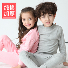 秋冬季儿童保暖内衣套装纯棉加厚男女童宝宝秋衣秋裤睡衣套装纯色