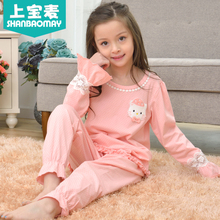 2017春夏儿童睡衣套装女童春秋睡衣长袖套装纯棉女孩睡衣家居服