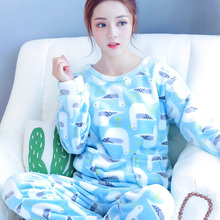 韩版睡衣法兰绒女士加厚秋冬季可爱少女款珊瑚绒保暖家居服套装