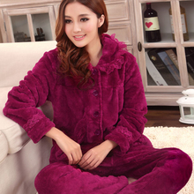 冬天睡衣加厚珊瑚绒女士保暖法兰绒家居服休闲长袖可外穿套装