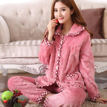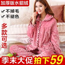 秋冬季法兰绒睡衣女冬珊瑚绒女加厚开衫春秋季韩版甜美家居服套装