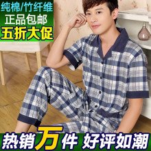 男士睡衣夏季纯棉短袖长裤夏天加大码薄款男式中年男款家居服套装