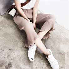 春夏季韩版显瘦高腰雪纺百褶阔腿裤女休闲七分裤宽松九分褶皱裙裤