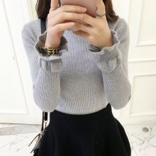 秋冬新款韩版花边套头毛衣女长袖短款针织衫半高领修身打底衫上衣