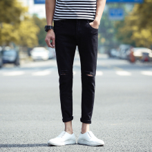 2017春装男士九分裤韩版修身小脚裤子青少年学生弹力牛仔裤9分裤