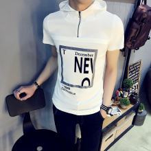 2017夏装薄款短袖t恤男士连帽韩版修身百搭个性体恤学生青少年T桖