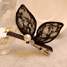 韩国时尚蕾丝边夹饰品 兔耳朵发夹刘海夹发卡子 水钻珍珠头饰发饰