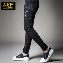 SXF圣希梵 秋季新款潮男休闲裤子 刺绣个性小脚长裤男修身卫裤男