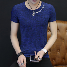 夏季男t恤短袖韩版圆领半袖上衣男装潮流个性体恤男冰丝修身衣服