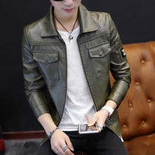 男装春季皮衣韩版修身外套男士夹克时尚青年上衣潮男帅气机车服