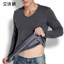 艾诗·祺加绒加厚保暖V领长袖T恤 男士紧身修身纯色加绒打底衫