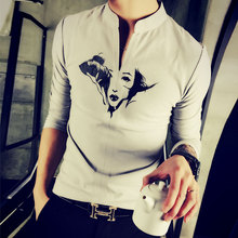 春季衣服社会网红同款精神小伙青年修身秋衣男长袖t恤打底衫潮流