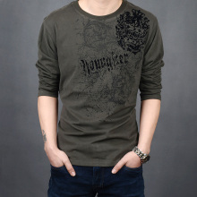 此时花落春装新款男士圆领长袖T恤宽松型印花加肥加大码t恤衫潮男