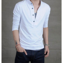此时花落 男士长袖T恤春装新款韩版加肥加大码胖子大号t恤衬衫领