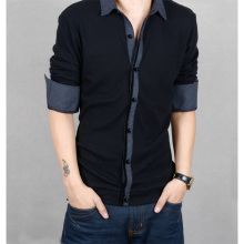 此时花落春季新款韩版假两件衬衫领男士针织衫开衫线衫男装薄毛衣
