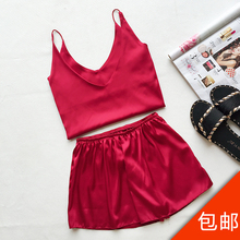 韩国丝滑缎面女士睡衣夏季性感冰丝吊带短裤家居服套装女夏薄款