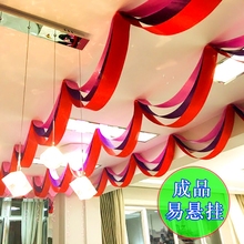 节日装饰店面商场4S展厅开业店庆波浪彩旗彩带吊顶拉花创意布置