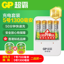 GP超霸五号充电电池充电套装5号1300毫安可充7号可循环充电