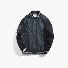 原创新款男士春秋复古修身剪裁牛仔夹克青年男拼接外套上衣棒球服