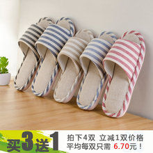 春夏季家居四季男女情侣棉麻亚麻拖鞋居家室内木地板软底防滑拖鞋
