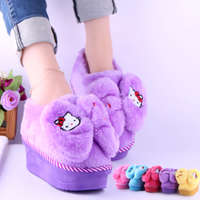 特价冬季高跟棉拖鞋女可爱厚底居家室内拖鞋坡跟防滑保暖毛拖鞋女