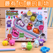 卡通动物橡皮擦铅笔卷笔刀套装 可爱小学生幼儿园六一儿童节礼物