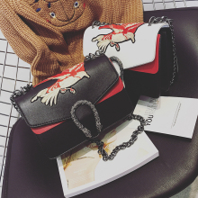 包包2017新款酒神包民族风动物刺绣包撞色女包链条单肩斜挎小方包