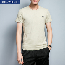 夏季青年V领短袖T恤男修身潮流小狗刺绣纯棉常规半袖打底衫学生