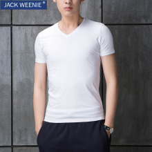 莫代尔无痕短袖T恤男v领个性潮流修身夏季青年常规半袖打底衫大码
