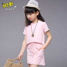 2016新夏装6女童短袖衬衫短裙套装休闲7儿童装8小女孩9夏季10学生