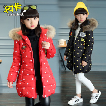 闪卡2016冬季新款女童外套女孩连帽棉衣女大童爱心加厚大衣棉服裙