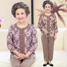 2017新款夏装女老年人妈妈装七分袖套装上衣裤60-70岁奶奶装唐装