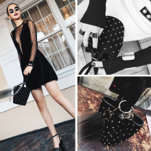 【钱夫人】CHINSTUDIO定制 经典金属风 小女生的暗黑系铆钉手提包