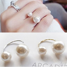 韩国手饰 优雅淑女款式 U形大小珍珠开口可调节戒指