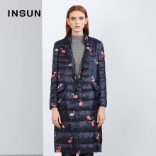 INSUN恩裳灵动精雅仙鹤印花舒适白鸭绒中长款轻薄羽绒服96608255