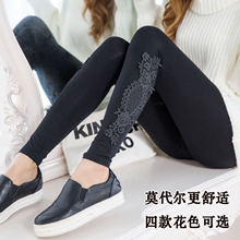 春款外穿莫代尔打底裤女蕾丝九分夏薄款高腰显瘦大码纯棉小脚长裤