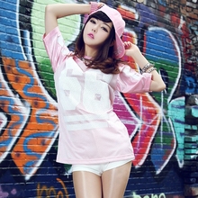 赤黑嘻哈jazz街头欧美街头潮流T恤网眼布拼接数字宽松短袖TEE