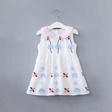 儿童娃娃领连衣裙 2017外贸韩版童装春夏季新款女童花朵刺绣裙子